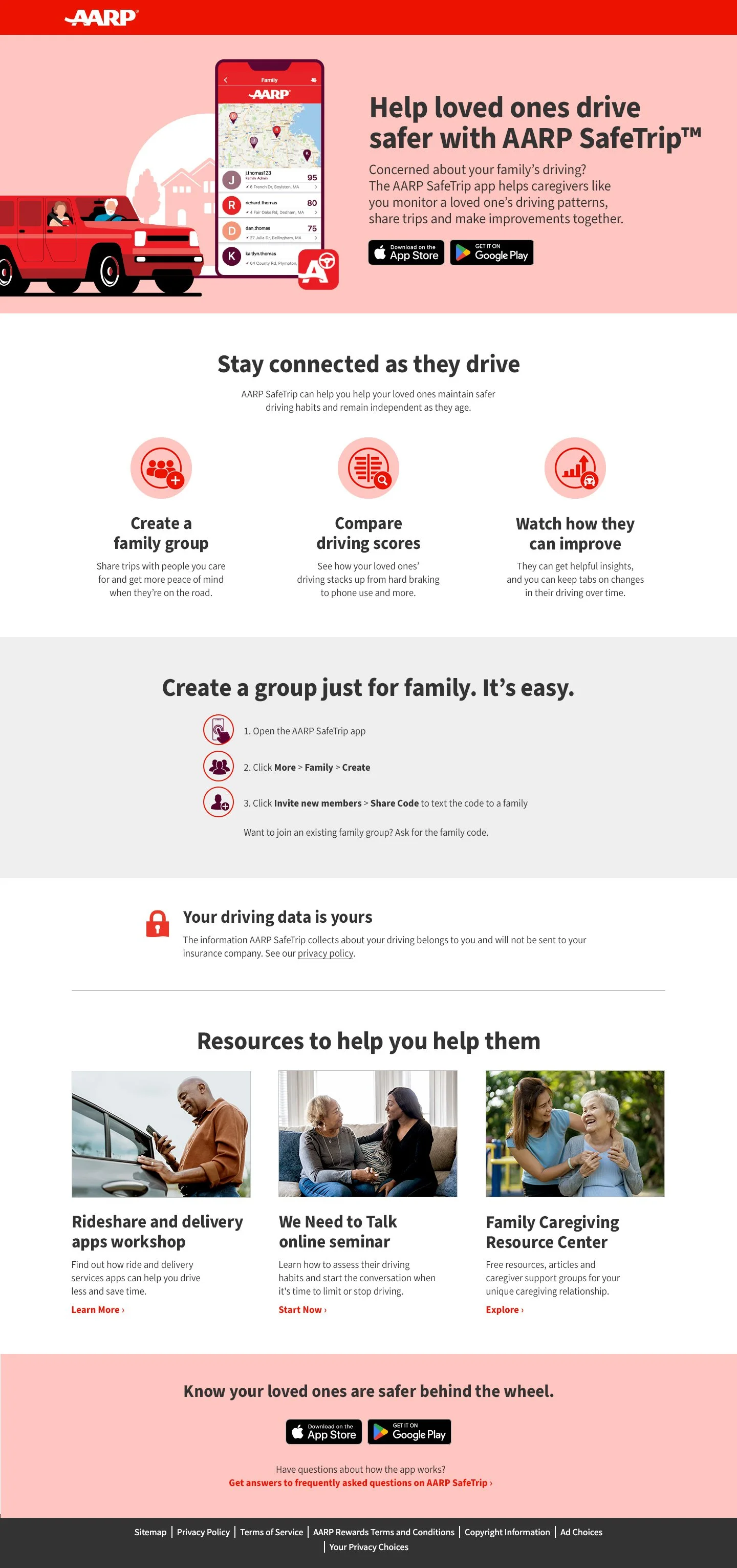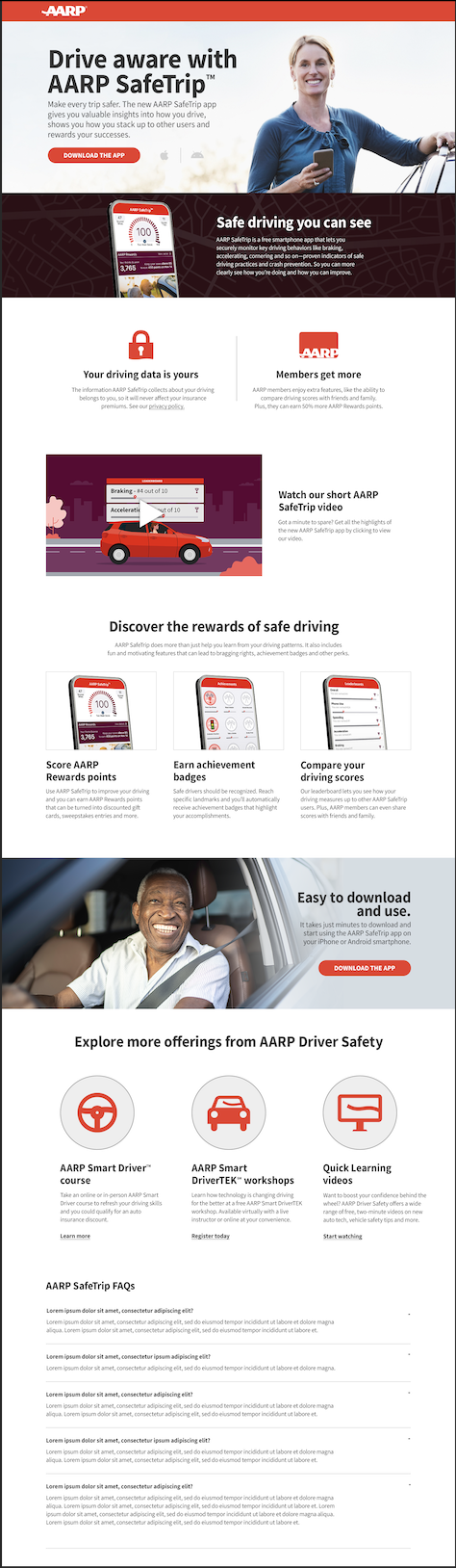 AARP partnered with the American Occupational Therappy Association (AOTA) to make a handy new safe driving app. We lent our full creative support to help ideate and launch AARP SafeTrip.